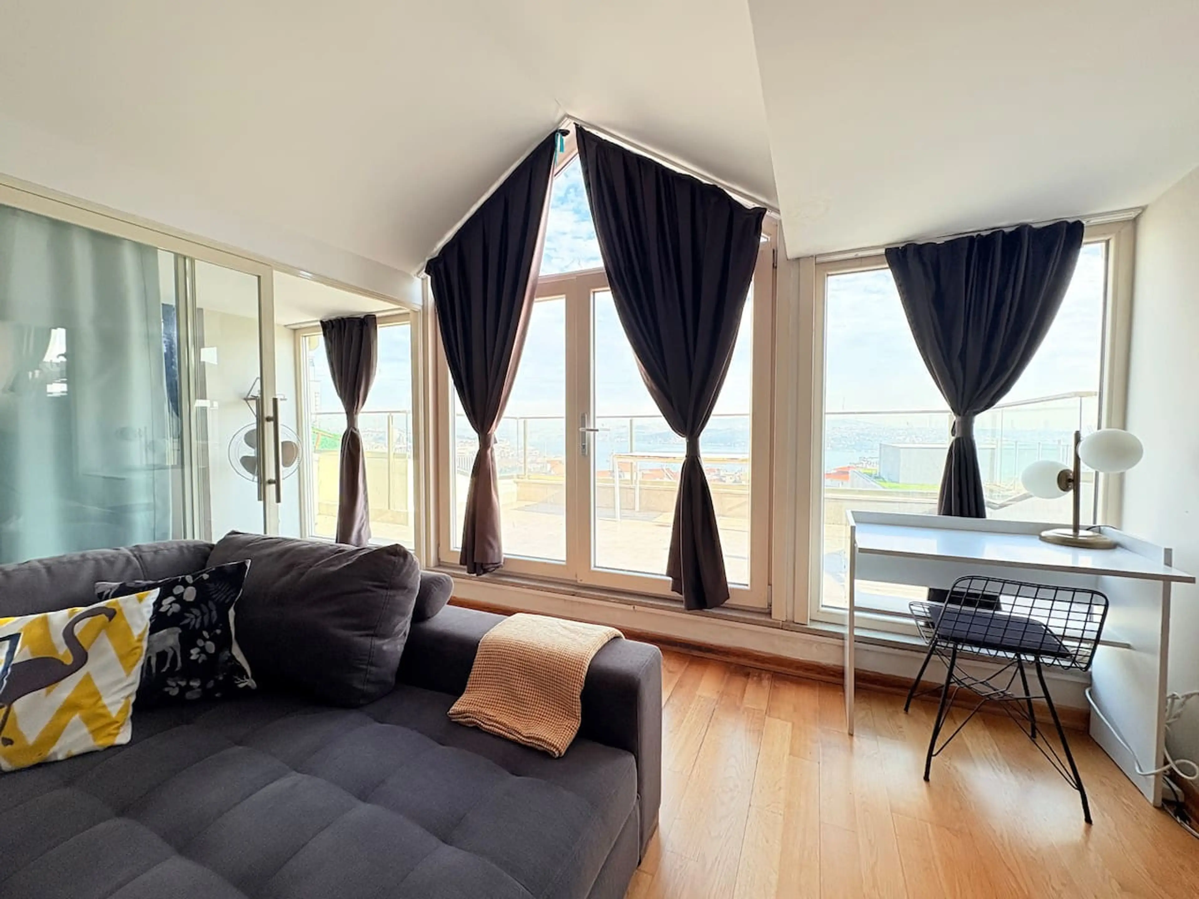 This brand new apartment with astounding sea sight is the newest building at Taksim Square. It is designed and decorated for couples, groups, and solo travelers in an ultra-modern and stylish way. Located on the 8th floor with a lift, 70 m2 flat consists of a modern living room and 1 bedroom and a ...